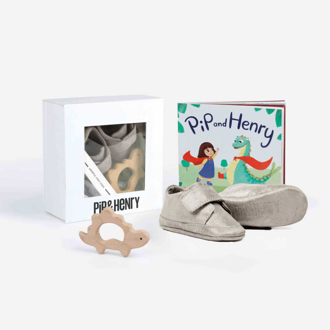 We have curated the perfect gift for new parents who want to make sure they are committed to a sustainable future for their little ones. The Pip & Henry Booties gift set contains a pair of booties of your choice, a copy of the popular storybook “Pip & Henrys Shoe Shop” where Pip & Henry go on an adventure together to help save the planet, and a gorgeous wooden dinosaur shaped teether. Factory off-cuts of goat suede, cow nubuck and sheep fur are all used to make our Booties. This ensures we are helping reducing waste, while still creating a product that offers comfort, padding and warmth for our little babies.