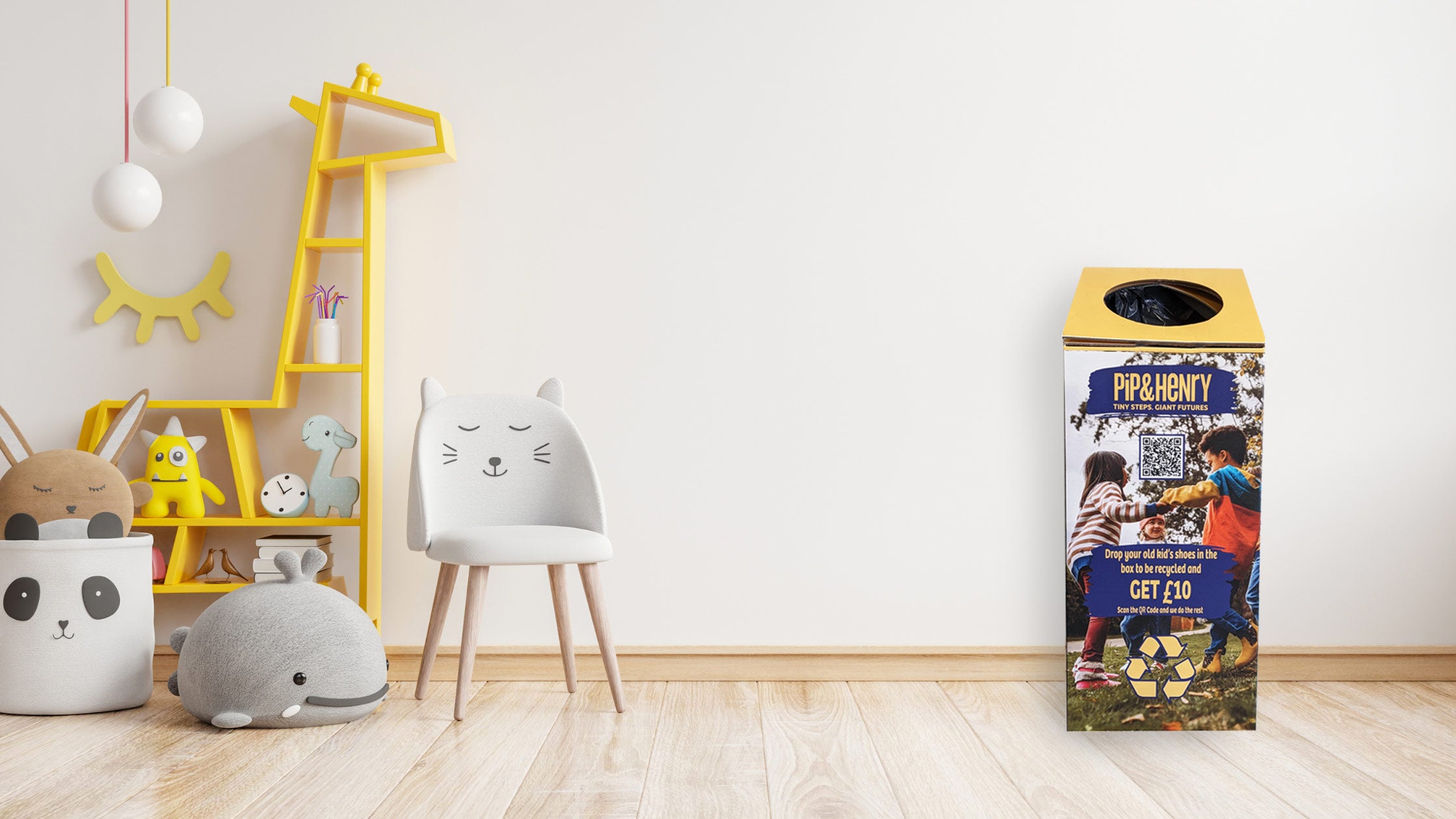 Visit Our Drop-Off Points: Find the nearest drop-off location and look for the Pip & Henry Shoe Recycling box.